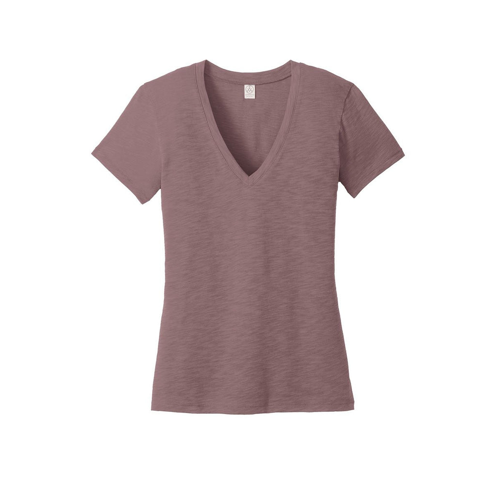 Alternative Apparel Women's Vintage Rose Weathered Slub So-Low V-Neck Tee