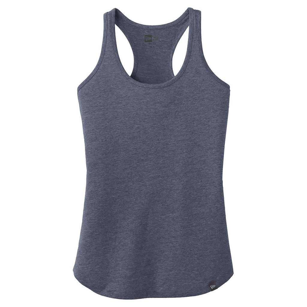 As stand-alone corporate apparel or a classic racerback tank that layers, the logoed New Era Women's True Navy Heather Heritage Blend Racerback offers the ultimate in fashion versatility. Wear the tank for play during a competitive company softball season and put the tank on underneath a second and third layer to generate more warmth. Contract binding at the neck and arm openings make the racerback tank stand out at outdoor civic events. Remember to attach a custom logo to promote your company in front of an interested audience. Great for your next company race or outdoor event. Your logo will be the star of the show when attached to this tank.Highlights