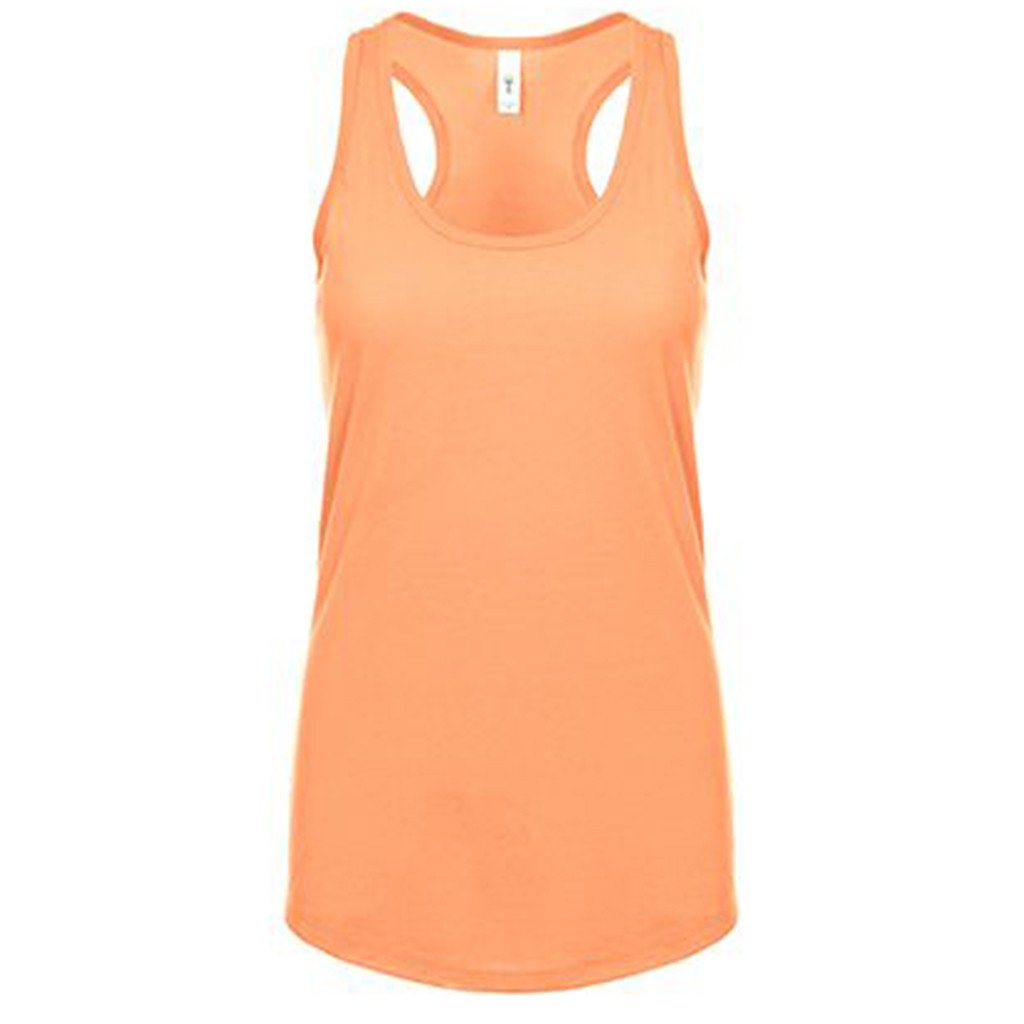 You thought you knew everything there was to know about WoMen's tanks. Then you met the Next Level Women's Light Orange Ideal Racerback Tank and, well, now you see there was much more to know. Allow us to fill in the blanks: comfortable, lightweight fabric gives the tank a casual feel. The self-fabric detailing makes for sartorially smart layering. And with enough strength and durability to put up with a regular fight in the wash, you'd be surprised at just how long this tank can last. Almost like an actual tank. Simply add your custom logo to up your unique brand's status.Setup includes free 2-color logo on 1 location. If you need more colors added to your logo, or another imprint location, please inquire with a Merchologist.