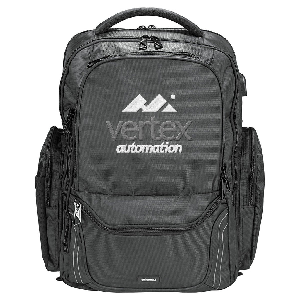 The Elleven Black Arc TSA 15" Computer Backpack provides you with not only a padded space for a laptop, but also a Techpak attachment for adding accessories into. The design lets you add a large logo onto the back part of the backpack. The design provides a comfortable surface for anyone to carry around and is a fine giveaway prize for anyone to have.Highlights