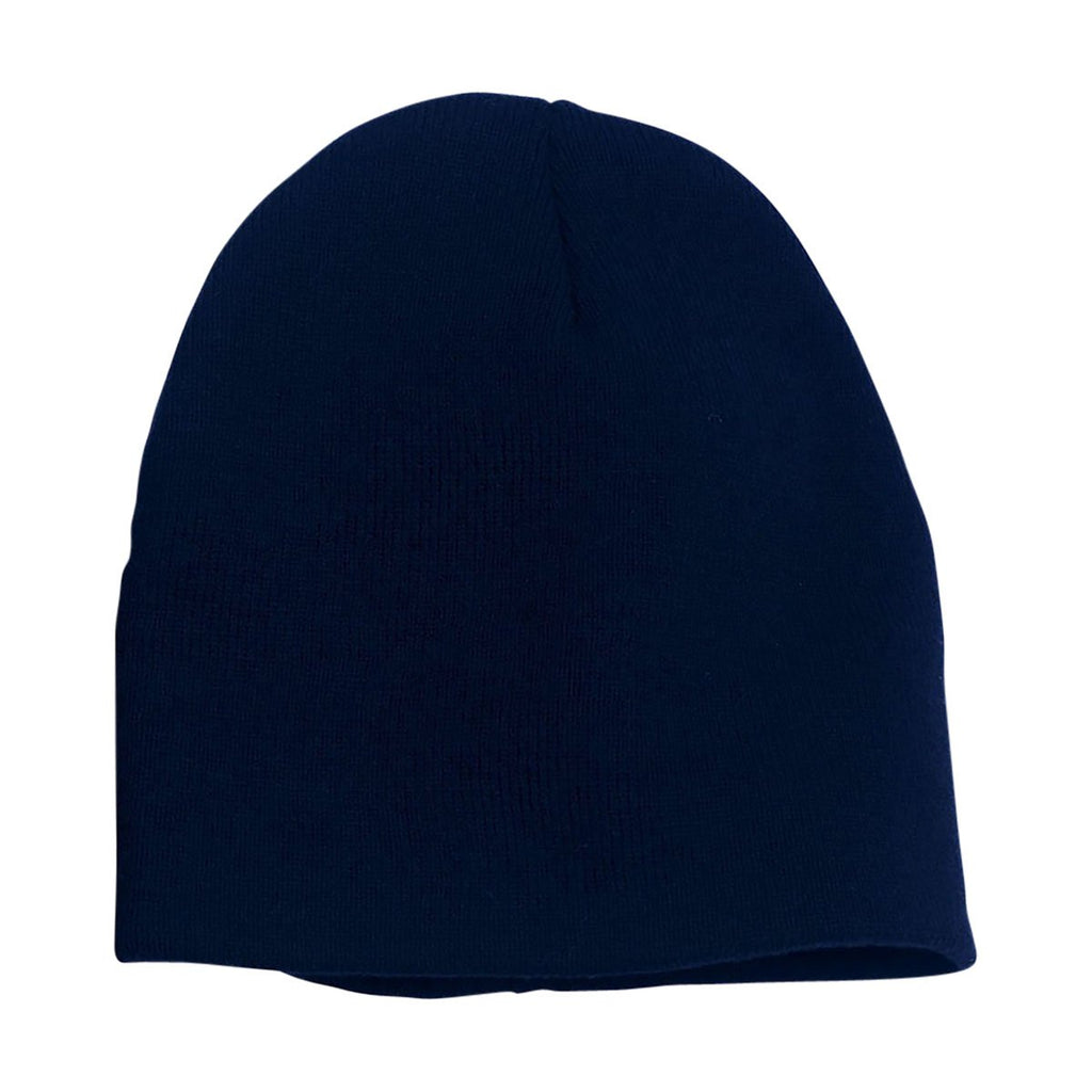 As an easy to put on knit cap, the embroidered Vantage Men's Navy Knit Beanie Cap delivers long-term high performance. One size fits the head to give you corporate apparel that brightens the day of your loyal customers. Add a custom logo on the large imprint area to create walking billboards for your company everywhere your loyal customers travel. With a company logo, you expand the presence of your company in the community. Blended cotton and acrylic achieve the rare fashion goal of offering maximum comfort and long lasting durability. Acrylic resists the types of rips and tears that shred the fabric of other cap styles.Highlights