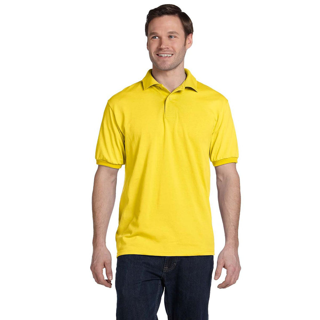Hanes Men's Yellow 5.2 oz. 50/50 EcoSmart Jersey Knit Polo