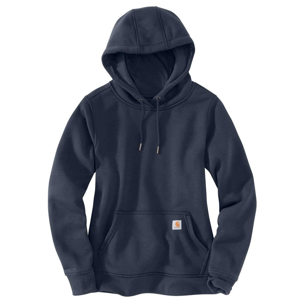 Sweatshirts make a famous workout wardrobe stronghold and with a little bit of customization oomph, they can nail that outdoorsy routine along with displaying your brand's identity such as logo or message. The Carhartt Women's Navy Clarksburg Pullover Sweatshirt is designed to inject energy and life into workwear and workout repertoire with all the warmth and without the bulk. Crafted from heavyweight, Cotton blend in a relaxed fit, this sweatshirt is a sporty favorite for cool-weather seasons. Create a fantastic winter giveaway and spread awareness of your brand by customizing this hoodie with your company's logo.Highlights