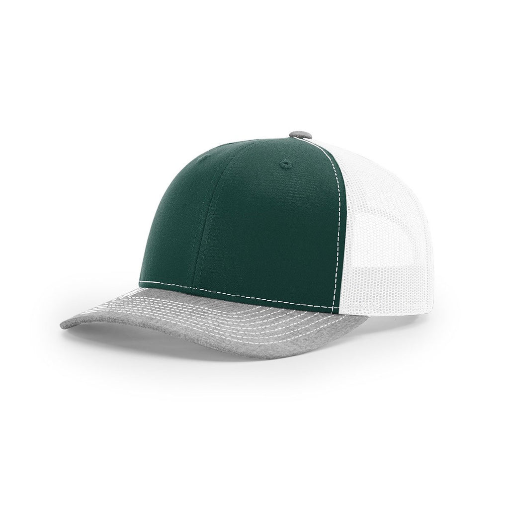 Richardson Dark Green/White/Heather Grey Mesh Back Tri-Colors Trucker Hat