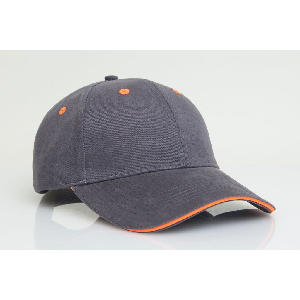 Pacific Headwear Graphite/Neon Orange Velcro Adjustable Brushed Twill Cap With Sandwich Visor