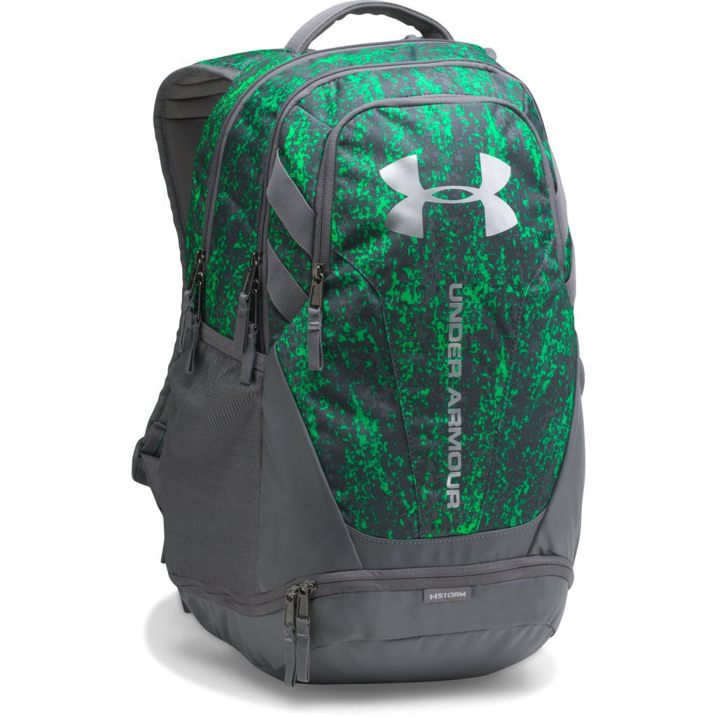 Hustle through congested airports by carrying the Under Armour Lime Twist/Graphite UA Hustle 3.0 backpack. The large, gusseted front pocket makes the perfect storage unit for shoes and the laundry you need to clean for the next business meeting. Adjustable HeadGear shoulder straps ensure you move through airport terminals with heavy loads balanced on your back. Grab the top handle to place the durable backpack inside of an airplane storage compartment. Under Armour Storm technology protects your business accessories against long exposure to wet weather conditions.ÂHighlights
