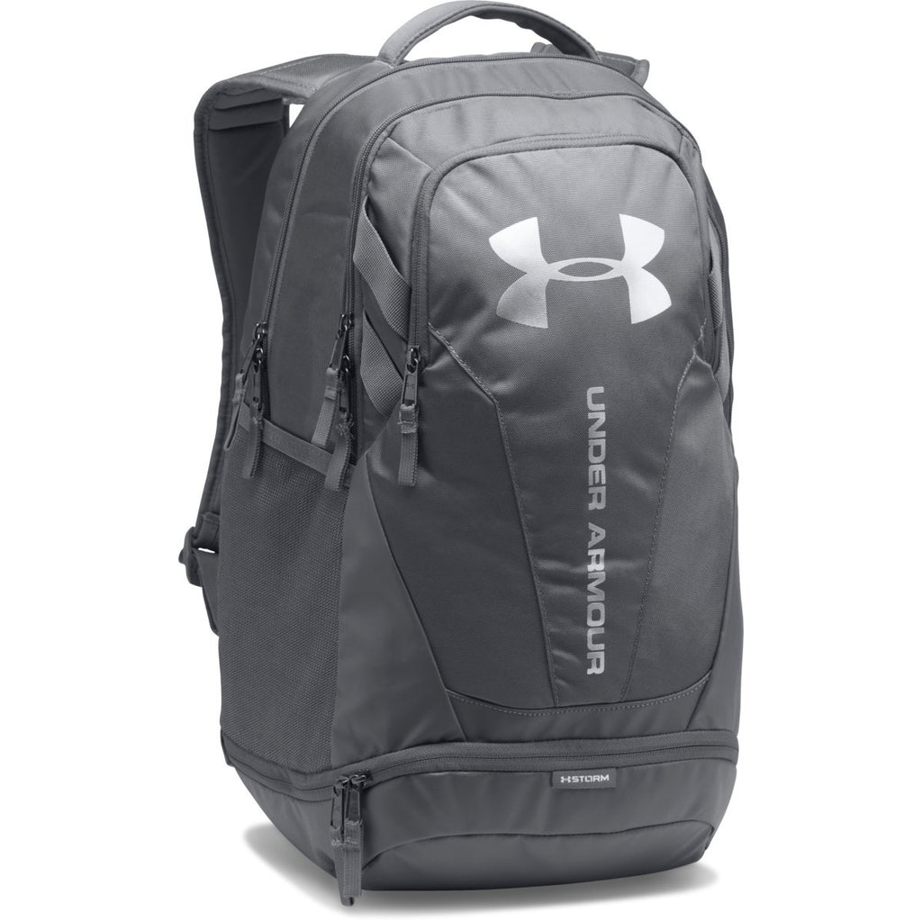 Hustle through congested airports by carrying the Under Armour Graphite UA Hustle 3.0 backpack. The large, gusseted front pocket makes the perfect storage unit for shoes and the laundry you need to clean for the next business meeting. Adjustable HeadGear shoulder straps ensure you move through airport terminals with heavy loads balanced on your back. Grab the top handle to place the durable backpack inside of an airplane storage compartment. Under Armour Storm technology protects your business accessories against long exposure to wet weather conditions.ÂHighlights