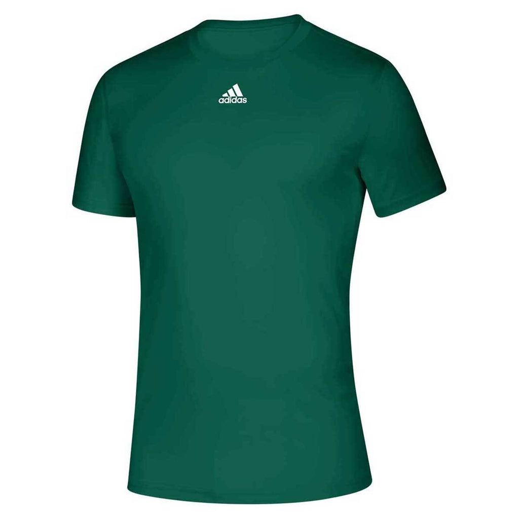 A custom tee has innumerable uses and the best can be found in the adidas Men's Dark Green Creator Short Sleeve Tee. Made of 100% polyester with moisture wicking performance material throughout, this short sleeve tee looks great during a pick-up game of basketball or with a company logo at a team event. The adidas logo rests comfortably on the center chest to demonstrate the quality of this versatile piece. Offering a regular fit, this tee comes in multiple colors to fit your styling needs and help your corporate logo pop.Highlights