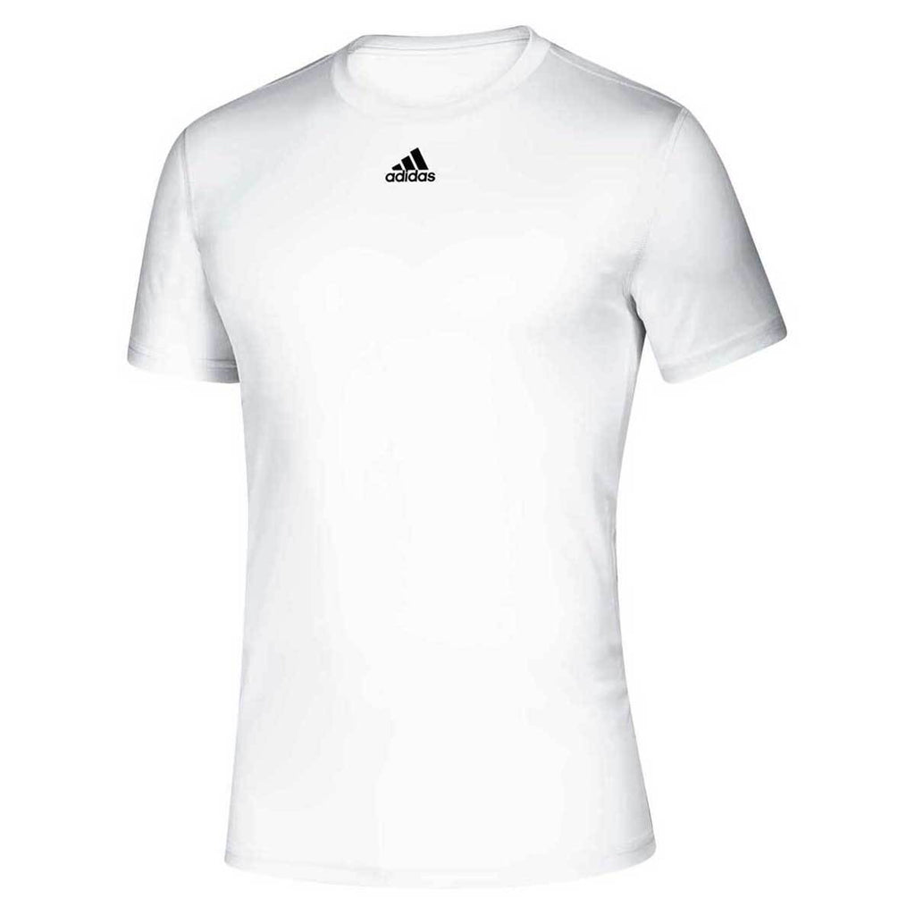 A custom tee has innumerable uses and the best can be found in the adidas Men's White Creator Short Sleeve Tee. Made of 100% polyester with moisture wicking performance material throughout, this short sleeve tee looks great during a pick-up game of basketball or with a company logo at a team event. The adidas logo rests comfortably on the center chest to demonstrate the quality of this versatile piece. Offering a regular fit, this tee comes in multiple colors to fit your styling needs and help your corporate logo pop.Highlights