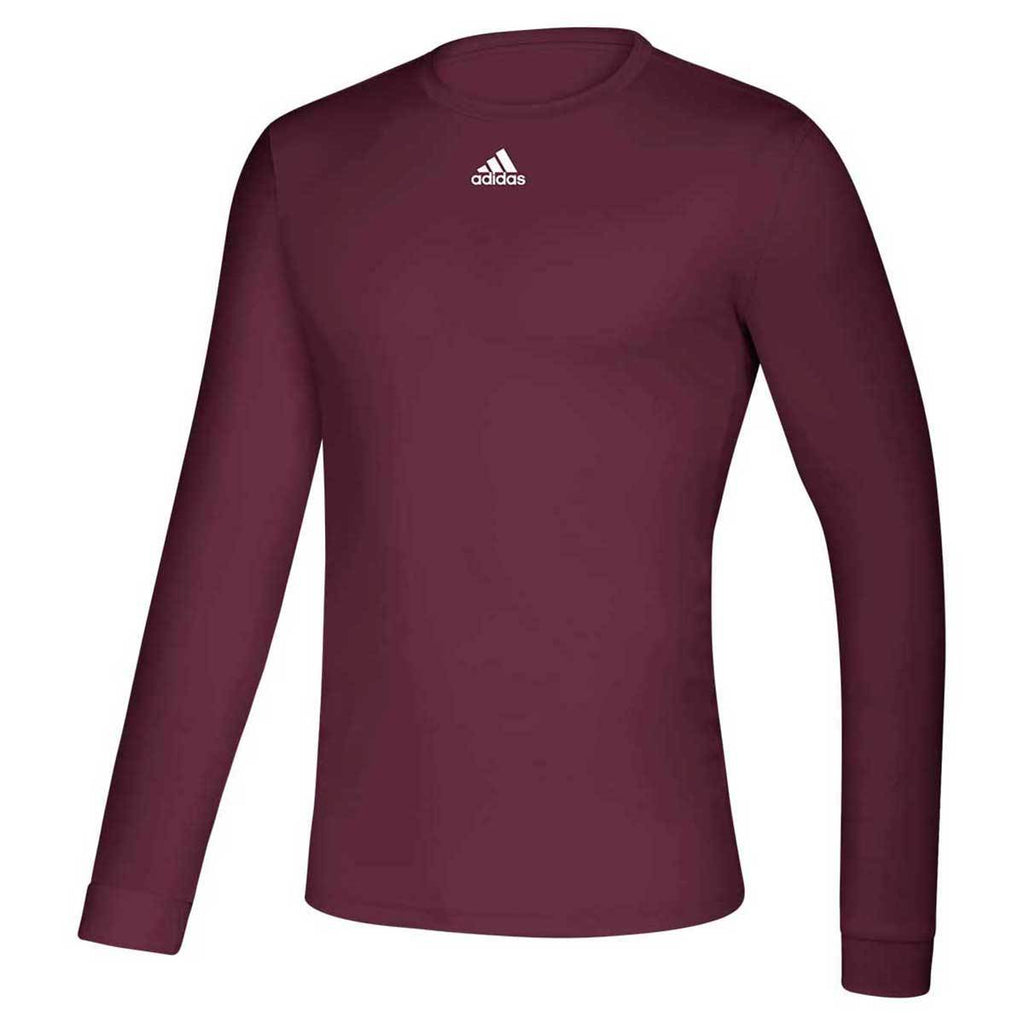 adidas Men's Maroon Creator Long Sleeve Tee will carry your heat transfer company logo with pride in a wide range of colors. A simple, yet iconic adidas logo rests front and center on the chest on this 100% polyester with a regular fit. Complete with moisture wicking performance throughout, the set in sleeves will not impede movement whether you are moving boxes or participating in a team event. Perfect as part of athleisure wear or to layer on chilly days, this long sleeve tee is a must have addition for every wardrobe.Highlights