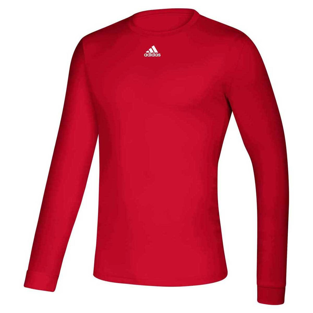 adidas Men's Power Red Creator Long Sleeve Tee will carry your heat transfer company logo with pride in a wide range of colors. A simple, yet iconic adidas logo rests front and center on the chest on this 100% polyester with a regular fit. Complete with moisture wicking performance throughout, the set in sleeves will not impede movement whether you are moving boxes or participating in a team event. Perfect as part of athleisure wear or to layer on chilly days, this long sleeve tee is a must have addition for every wardrobe.Highlights