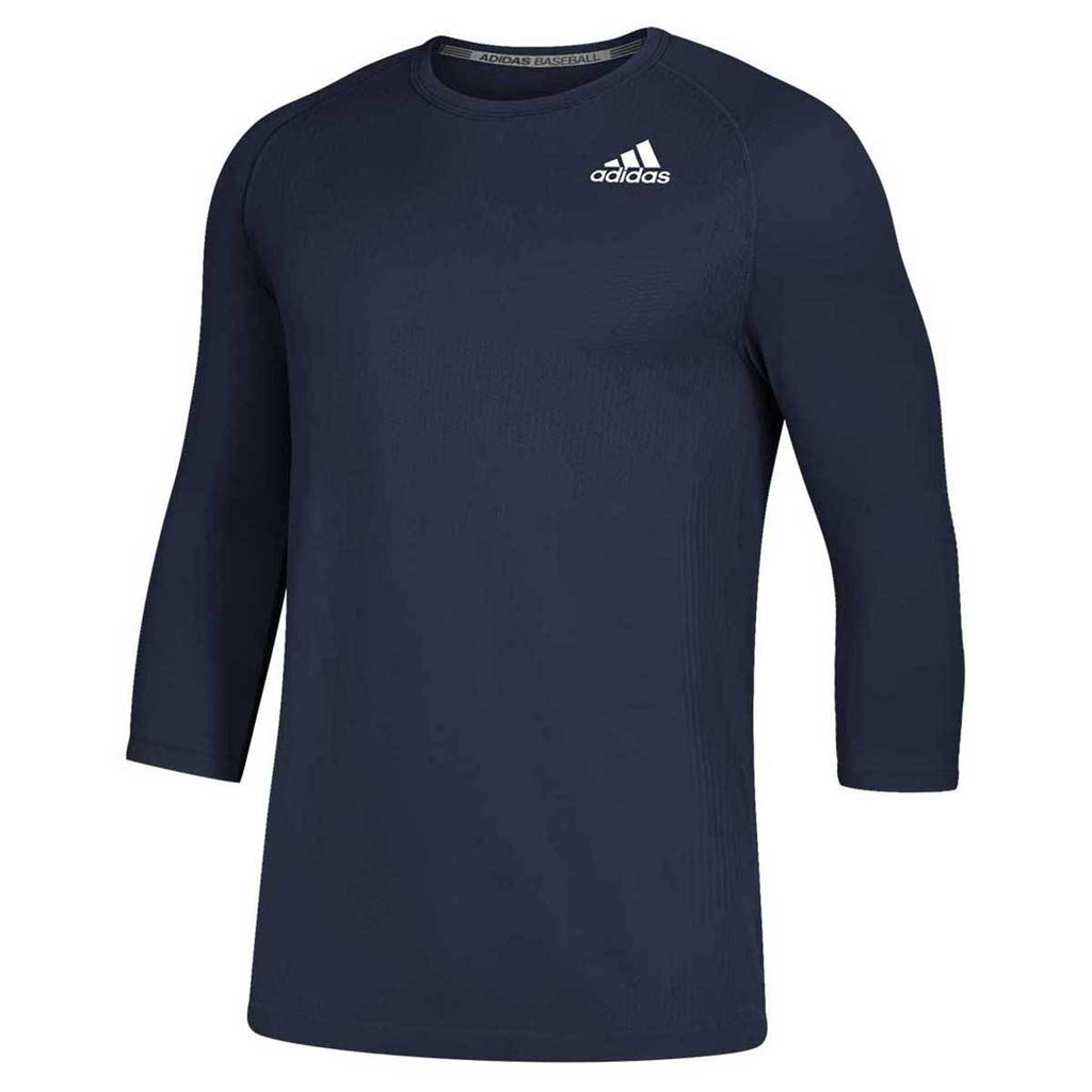 Enjoy a custom look with the adidas Men's Collegiate Navy Fielder's Choice 2.0 3/4 Baselayer in a variety of solid color choices. Made of 100% seamless nylon the 3/4 length sleeves are perfect for those long days in the sun on the field. The ideal choice as athleisure wear for nearly any team event, these adidas shirts are a must have. Add a company logo in your choice of screen printing to offer these as employee gifts or uniforms for the company team.Highlights