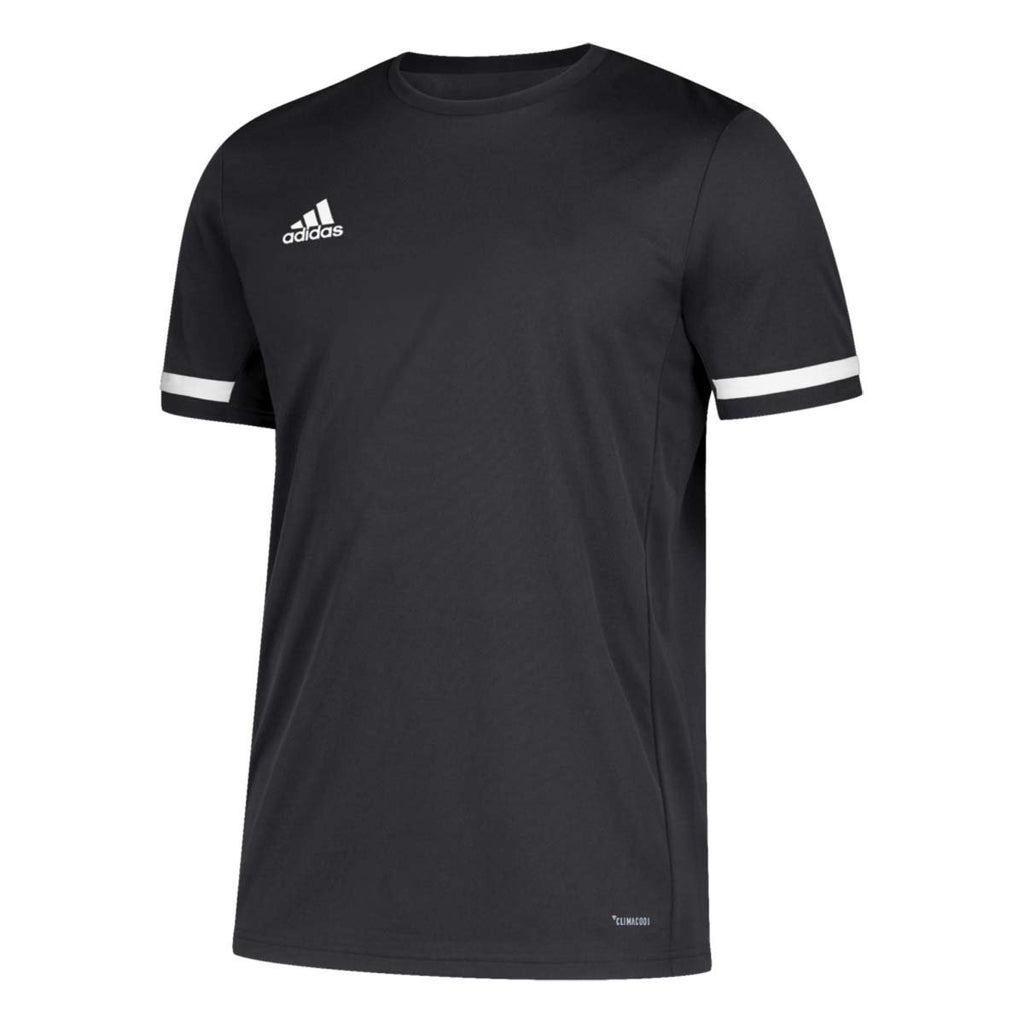Hit the court or the field in the adidas Men's Black/White Team 19 Short Sleeve Jersey in ten gorgeous colors. Made of 100% recycled polyester interlock on the body with additional recycled engineered mesh side panels, these jerseys are made to stand the test of time. Add your screen print custom logo to show team spirit for a corporate event or offer as employee gifts for the next occasion. The adidas logo on the chest and single white stripe around the cuff add flair to the overall look.Highlights