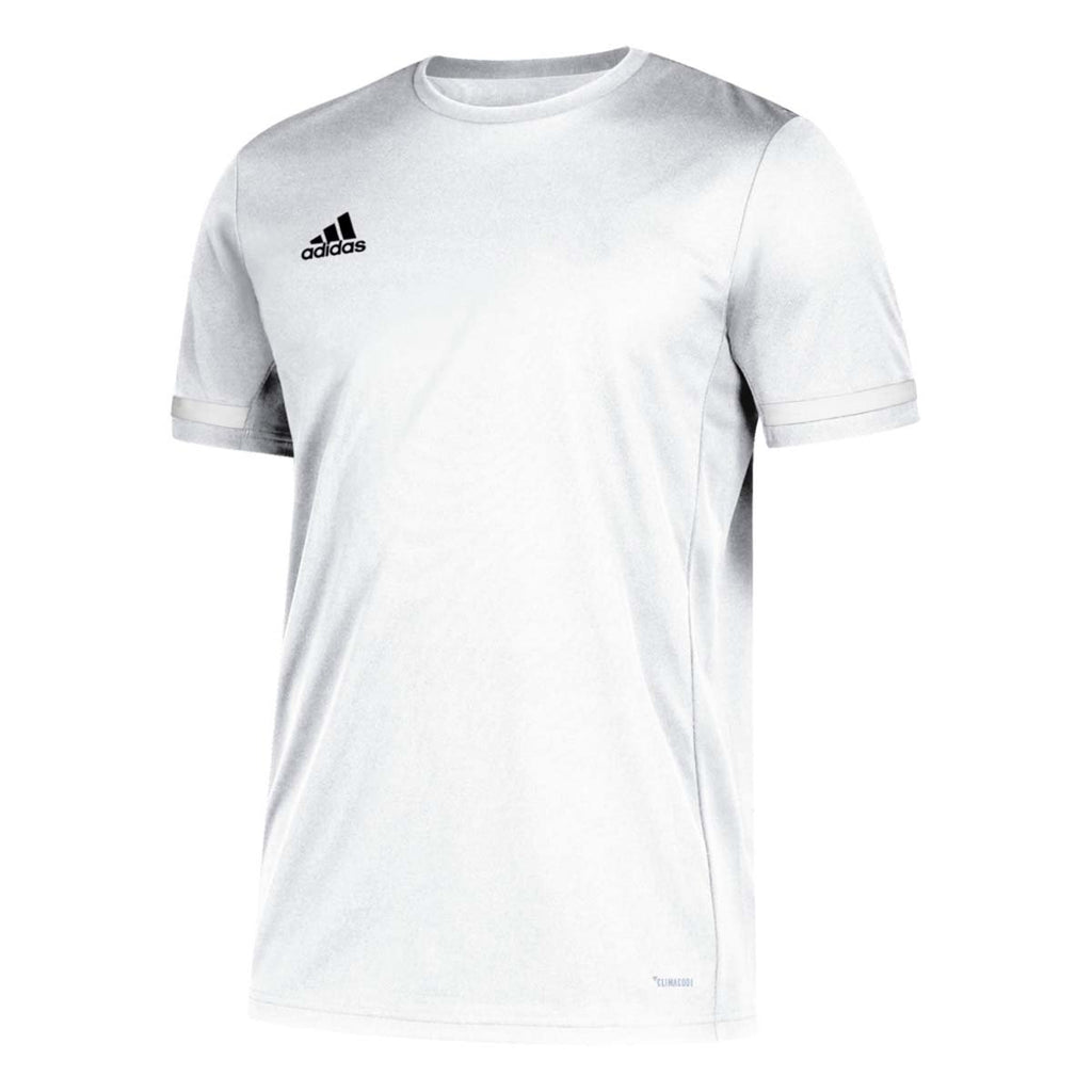 Hit the court or the field in the adidas Men's White/Black Team 19 Short Sleeve Jersey in ten gorgeous colors. Made of 100% recycled polyester interlock on the body with additional recycled engineered mesh side panels, these jerseys are made to stand the test of time. Add your screen print custom logo to show team spirit for a corporate event or offer as employee gifts for the next occasion. The adidas logo on the chest and single white stripe around the cuff add flair to the overall look.Highlights