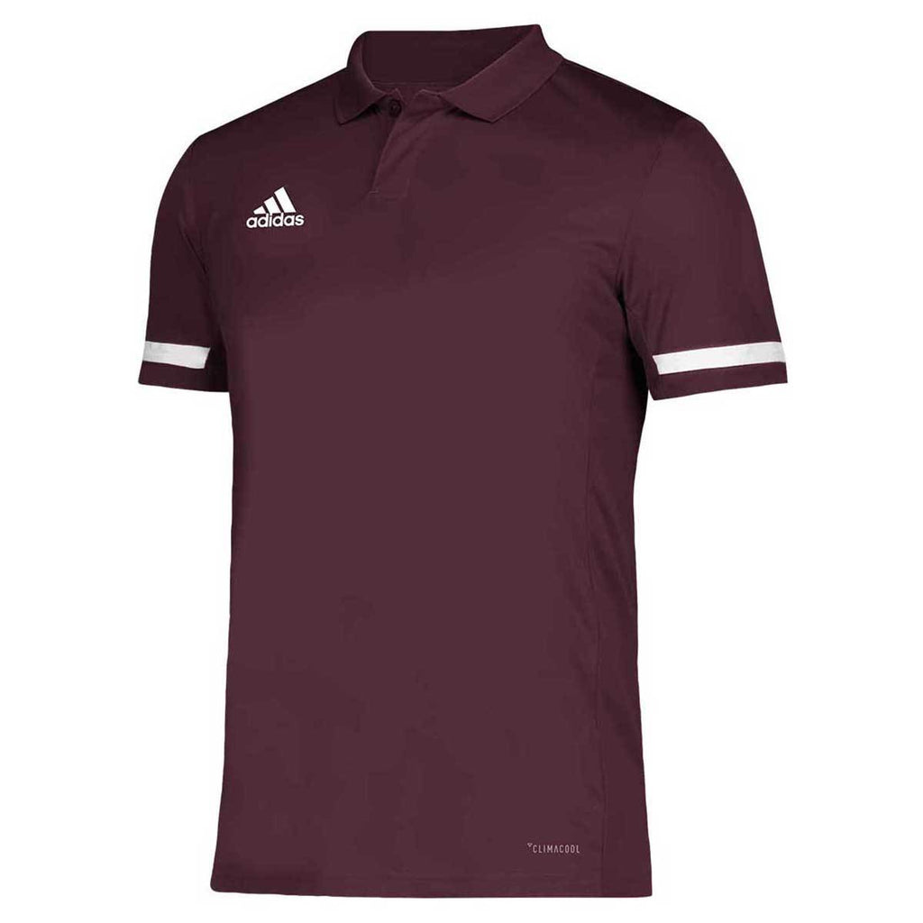 Class up your custom look with the adidas Men's Maroon/White Team 19 Polo. Available in seven color options and made of 100% recycled polyester warp knitted pique this is the perfect polo for a corporate event that can also be used as part of a uniform. Add a corporate embroidery to use for team events at the company get togethers or wear to the office on casual Fridays. The heat transferred adidas logo appears on the right chest and a single white stripe rests on the cuff. Mesh side panels and underarm gussets assure a full range of motion in the two button placket polo that everyone will love.Highlights
