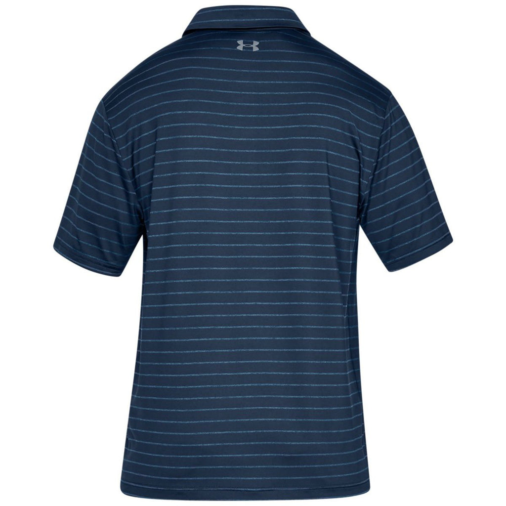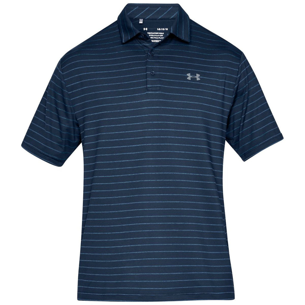 Everyone should own at least one nice polo and the Under Armour Men's Academy Striped Playoff 2.0 Polo will not disappoint. Great as corporate apparel or as part of employee uniforms, this polo can carry your company logo with pride in the office and on the tees. Choose your custom embroidery for this loose fitting polo that offers a self fabric collar and four way stretch for easy movements. This polo even protects the skin with UPF 30+ so those long days on the course with the sun beating down are no match for the sweat wicking material. Order several to use at different events or just to wear daily as you head to the office!Highlights