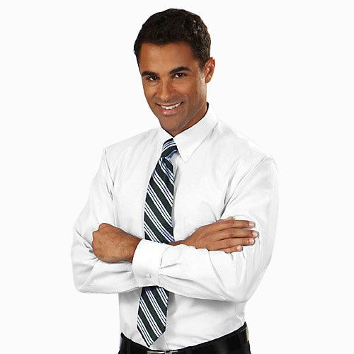 Let's get back to basics, shall we? There's nothing more important to someone who works an office job than an Oxford shirt. But that Oxford needs to be more than just a shirt, it needs to be a uniform, a sturdy piece of work wear that can handle being used more than once in a week. This Van Heusen Men's White Long Sleeve Oxford Shirt-Alpha Sized fits the bill with wrinkle-free construction, 40% polyester of strength to its 60% cotton of comfort, and easy care fabric. All that's really missing to make this a perfect item for the office? Your custom corporate logo added to the front.Corresponding Women's Style: Van Heusen Women's White Long Sleeve Oxford Shirt-Alpha Sized