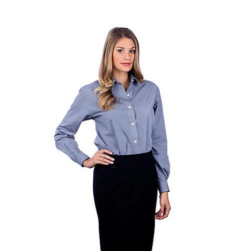 It's not enough to look your best. You also have to feel your best. With this Van Heusen Women's Blue Coolest Comfort Check Long Sleeve Shirt, you won't have to worry about either one. The point collar is a nice, subtle touch that adds professionalism to your outfit. Meanwhile, the cool comfort keeps you well protected from sweat stains and gives you the sense that you can keep on working even when the pressure's on. Add your custom small business logo to the front of this shirt to fashion it into a promotional item, a fun corporate gift, and much more.Highlights