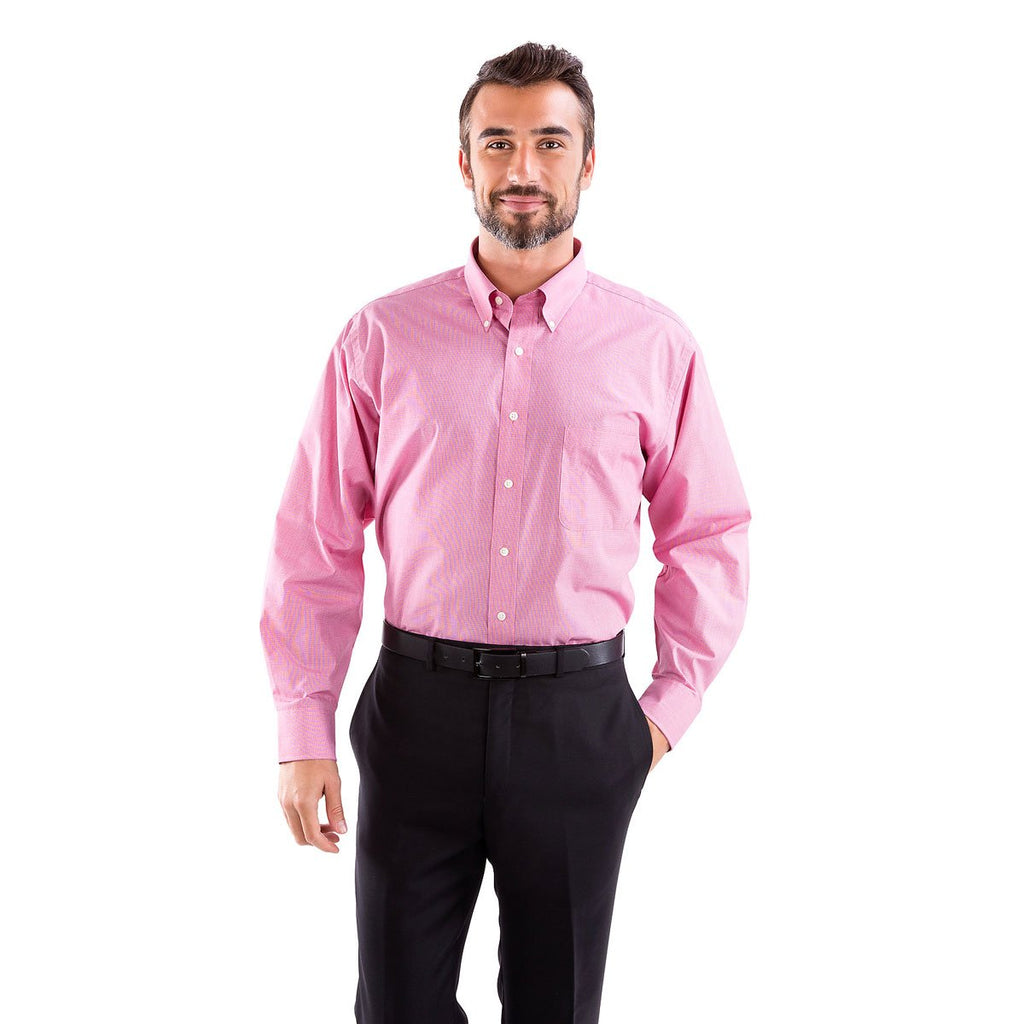 Classic, traditional, and an ideal candidate for professional logoed uniforming in companies, Van Heusen Men's Red Mini Check Dress Shirt is a button-down boasting an office-ready style. Its lightweight cotton-blend ensures breathable comfort, and the mini checkered design hue creates a subtle yet handsome appearance for formal and casual occasions. Patch pocket for your pens or sunglasses. Dressy and durable, this shirt works well in both formal and casual occasions. Just like the transitioning weather, this shirt can transition from work to play all year round. With a timeless silhouette, it adds a special touch of handsome to any ensemble.