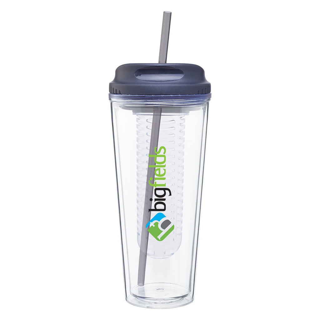 Revitalize your drinks with this bottle featuring threaded column that infuses water with fresh particles from natural ingredients like fruits and veggies. It has a 20oz capacity and double wall design to control temperature. This ETS Storm Grey Infuse Acrylic Tumbler 20 oz can be customized with company logo and message for corporate gifts and advertising.