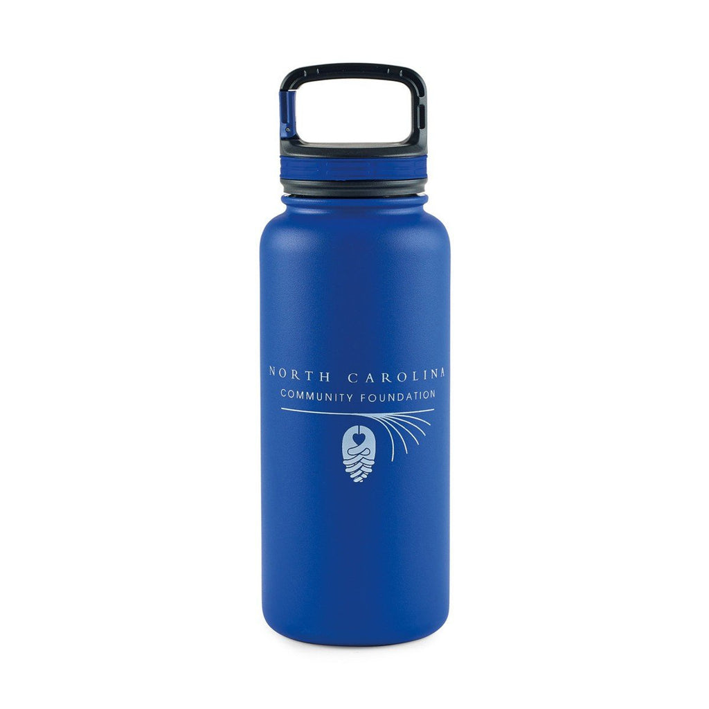 Constructed with hard to dent and scratch 18/8 stainless steel, the Aviana Royal Blue Cypress XL Double Wall Stainless Bottle 32 oz includes an integrated carabiner clip that easily connects to a belt loop or a backpack strap. The bottle never retains foul odors or flavors to give you a pure drinking experienced every time. Double wall vacuum insulated design maintains the right temperature for cold beverages throughout your workday. Passivated interior design prevents corrosion from destroying the bottle. The large lid opening allows you to add ice to your favorite beverage. Add your corporate logo and watch awareness of your company soar.Highlights
