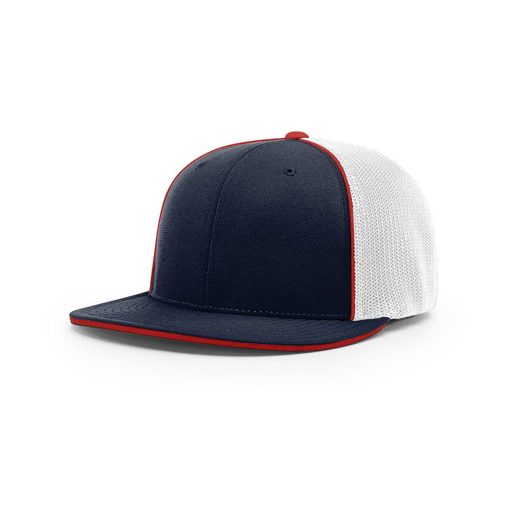What's better than a baseball cap customized with your company or team's logo? Watch your marketing message reaching new heights with this Richardson Navy/White/Red Mesh Back Pulse/Mesh R-Flex Cap made of PULSE fabric that keeps head feeling cool and comfortable. Mesh back design ensures optimal breathability while an on-trend flat bill shields eyes from the sun.Highlights