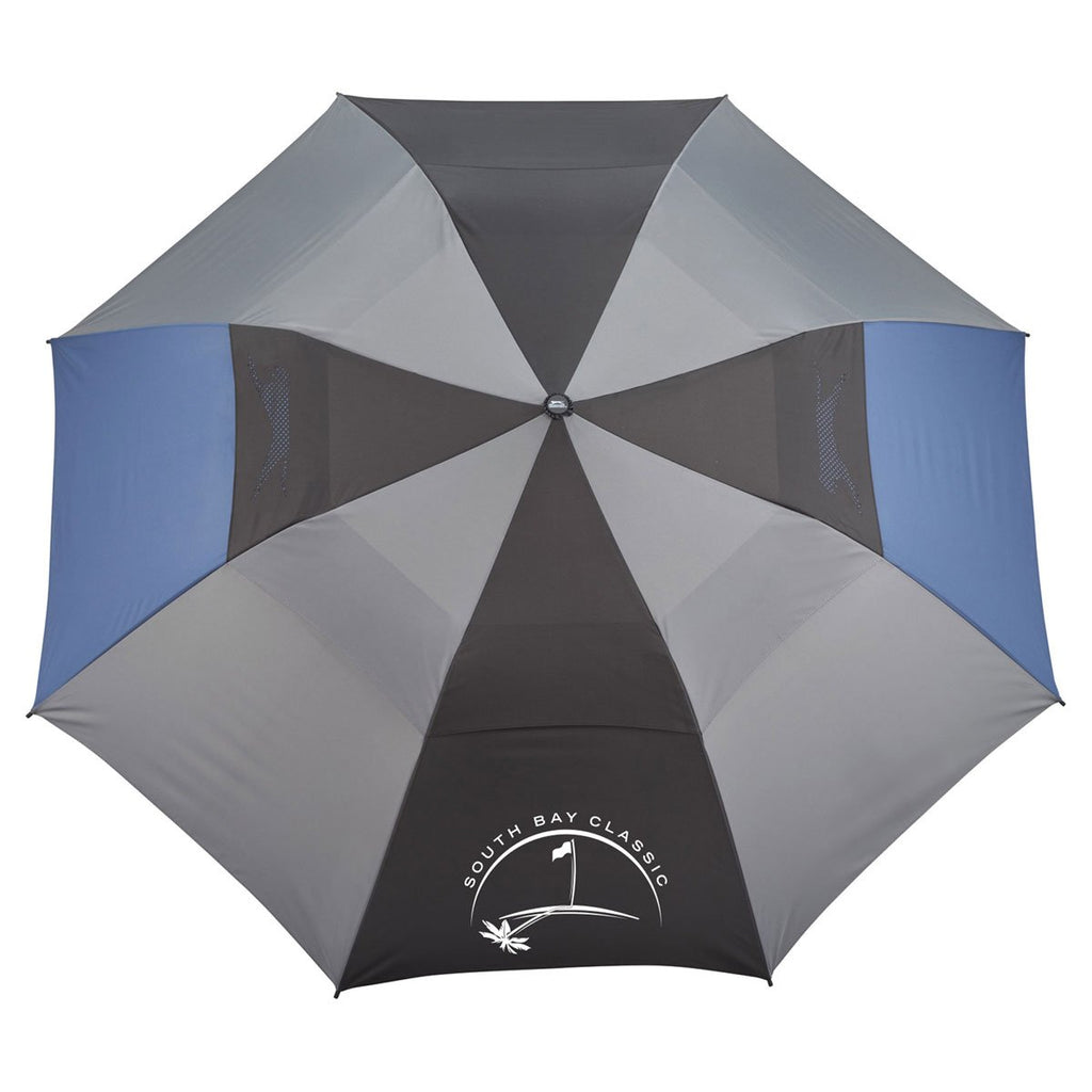 The Slazenger Navy/Black 55" Vented, Auto Open Folding Golf Umbrella is an attractive giveaway item or souvenir to give to your clients. You can offer this as a sponsored gift for an outside event too. The umbrella has three colors on its design. The unit is about 21 inches long when retracted all the way.