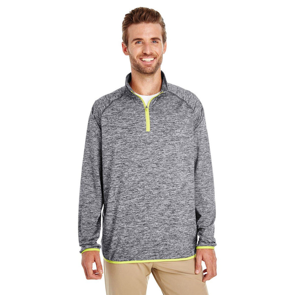 Reflective zipper tape on the embroidered Holloway Men's Carbon Heather/Bright Yellow Force Training Top allows you to train at night. Wear the multi-purpose training top when you jog along a road at night or for cycling through fog during the day. Four-way stretch spandex increases your mobility throughout an intense sporting event. Raglan sleeves offer more movement flexibility for the arms, which makes the stylish training top ideal for shearing bushes and reaching tree branches. The quarter-zip neckline ensures your neck receives full protection from the sun's harmful UV rays. Add your corporate logo and watch awareness of your company soar.Corresponding Women's Style:Holloway Women's Carbon Heather/Bright Yellow Force Training Top