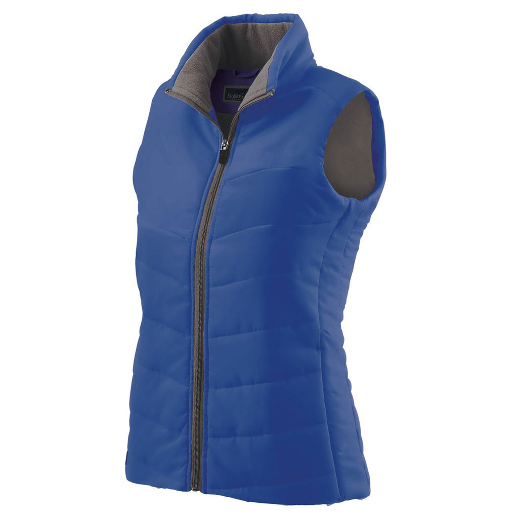 Admire your taste in high-end fashion by ordering the decorated Holloway Women's Royal Full Zip Admire Vest for the female members of your accomplished corporate team. With a drop tail hem accentuating the stylish appeal of the vest, the women who help your company increase sales will receive many compliments in the field. Make the compliments work for your brand by attaching your company logo on the large imprint area. Rugged polyester resists the types of rips and tears that diminish the quality of other styles of vests. The vest works as an outer layer for active professionals who also want a sleek vest to wear for high-energy nights on the town.Highlights