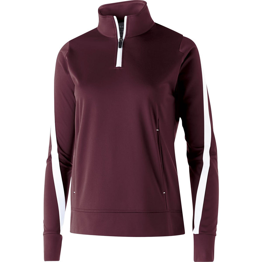 Holloway Women's Maroon/White Quarter Zip Determination Pullover