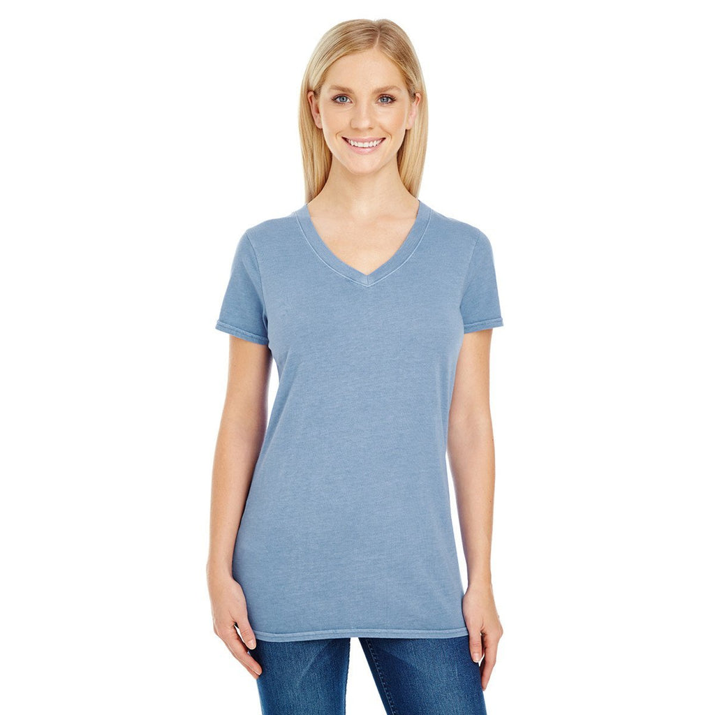 Threadfast Women's Denim Pigment Dye Short-Sleeve V-Neck T-Shirt
