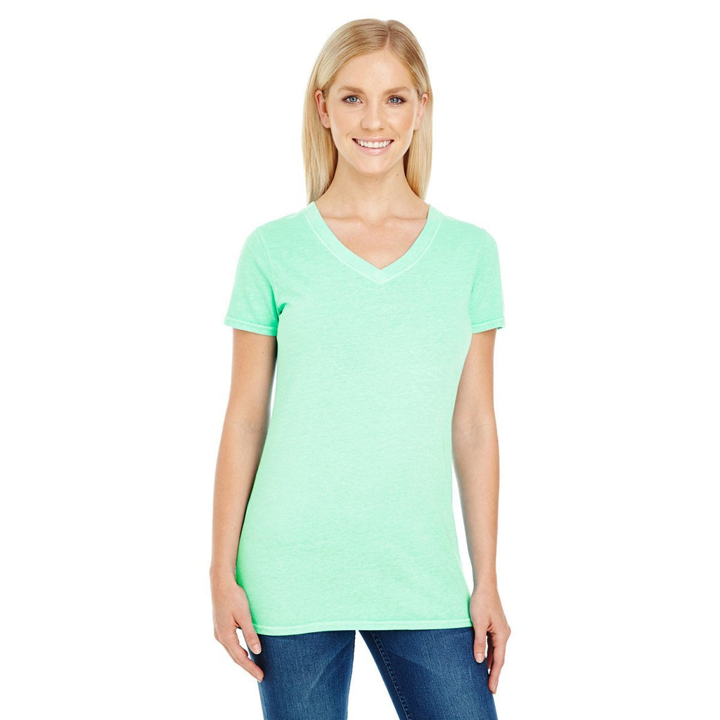 Threadfast Women's Mint Pigment Dye Short-Sleeve V-Neck T-Shirt