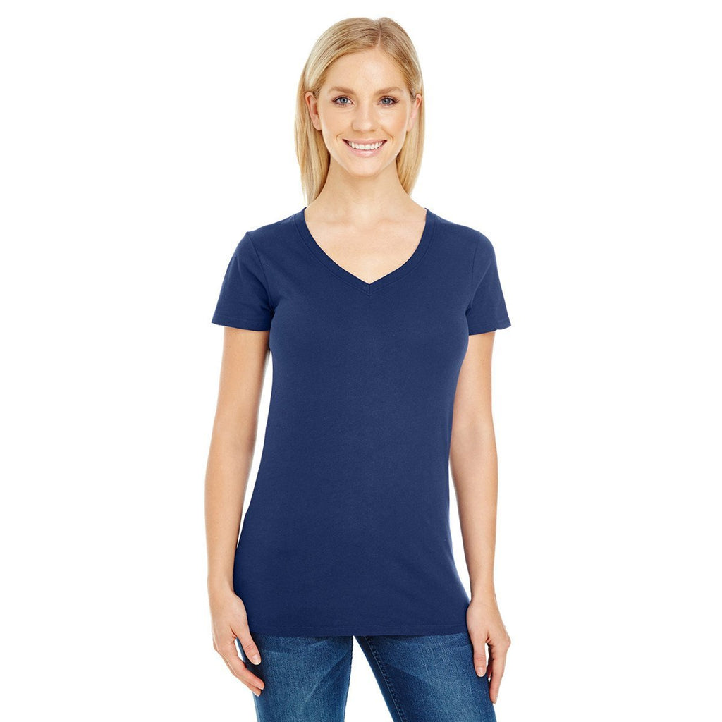 Threadfast Women's Navy Pigment Dye Short-Sleeve V-Neck T-Shirt