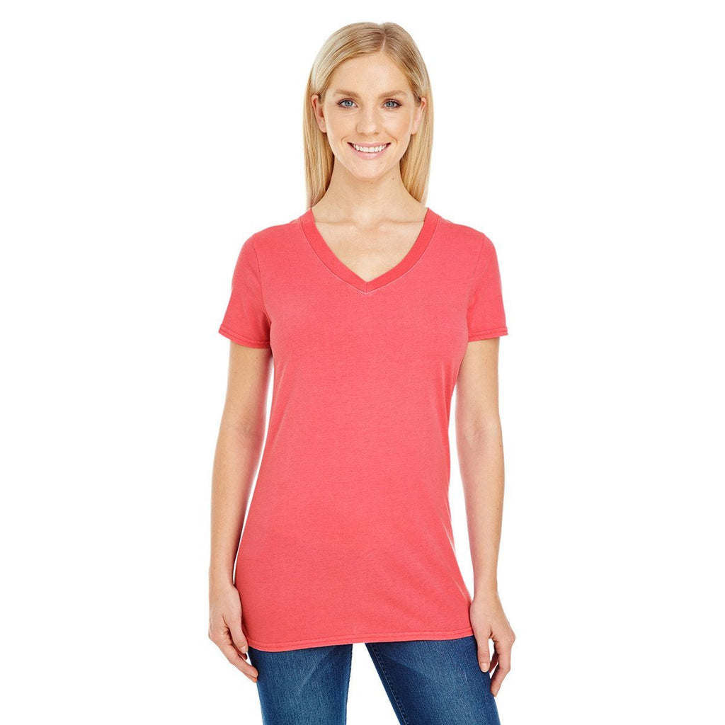 Threadfast Women's Red Pigment Dye Short-Sleeve V-Neck T-Shirt