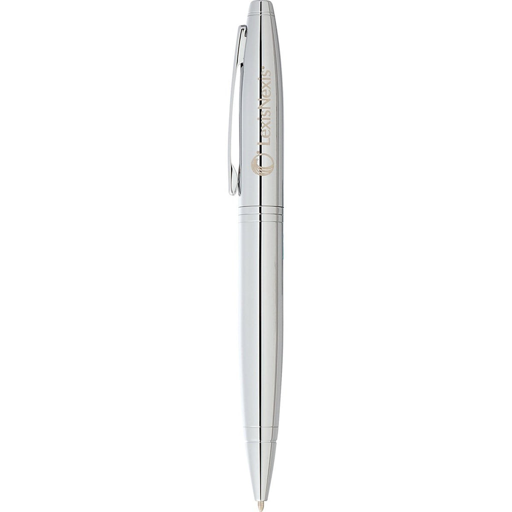 A shiny chrome finish and a well-crafted art deco design make Cross Silver Calais Chrome Ballpoint a very sophisticated custom corporate gift. Lightweight with a pristine chrome finish and smooth black ballpoint ink make this ballpoint an instant classic. Includes lifetime mechanical guarantee and signature Cross gift box.