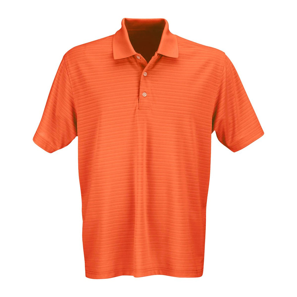 When you put on the embroidered Vantage Men's Orange Textured Stripe Polo, you immediately notice how the fine texture creates a super soft feel on the skin. Combined with superior moisture management, the stylish stripe polo is perfect to wear during highly competitive athletic events. The stripe design enhances visual appeal to make you stand out at industry trade shows. Since you have everyone on notice that you exude panache, why not display the custom logo added on the large imprint area. The drop tail bottom and no-curl collar features also add style points for the polo.Highlights