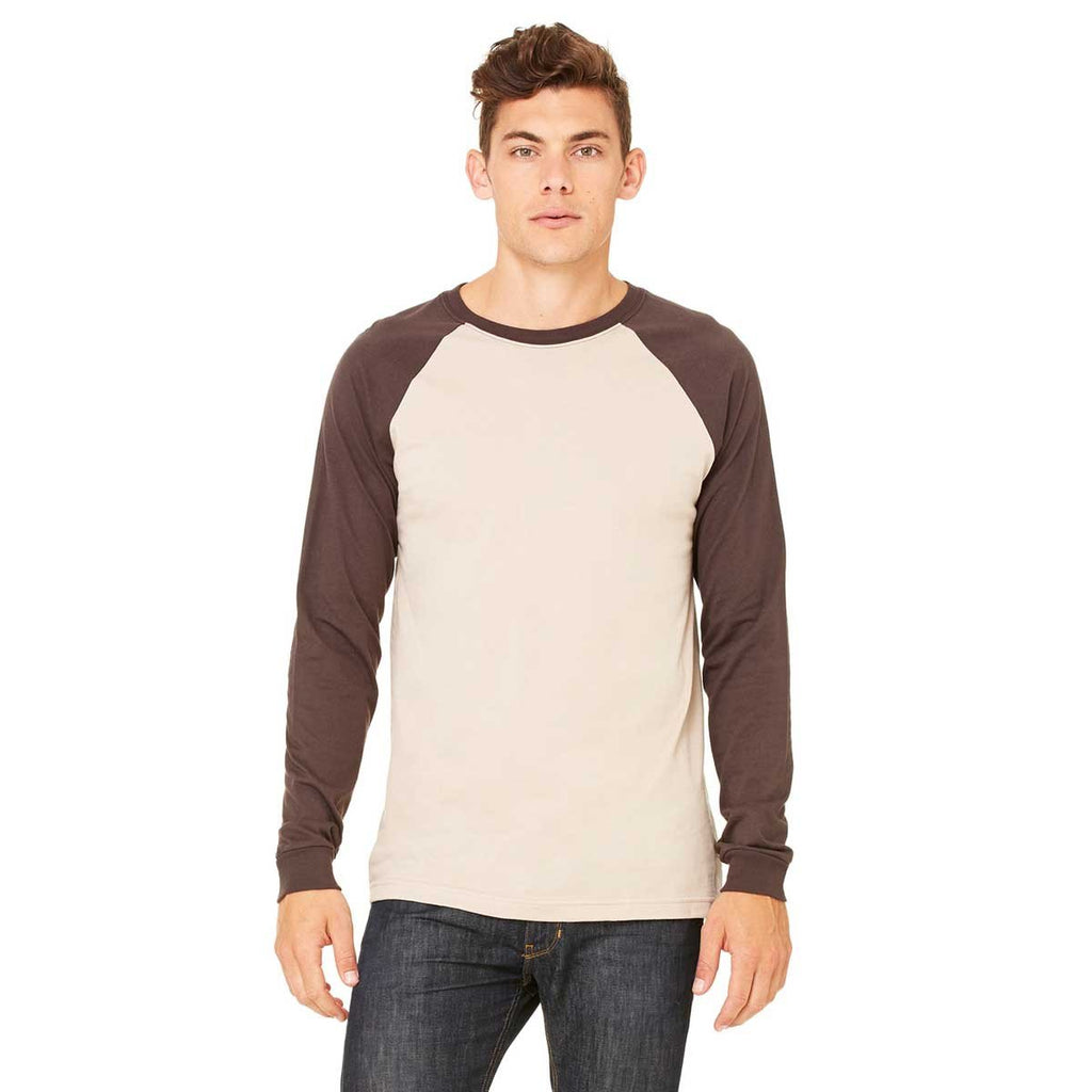 Bella + Canvas Men's Tan/Brown Jersey Long-Sleeve Baseball T-Shirt