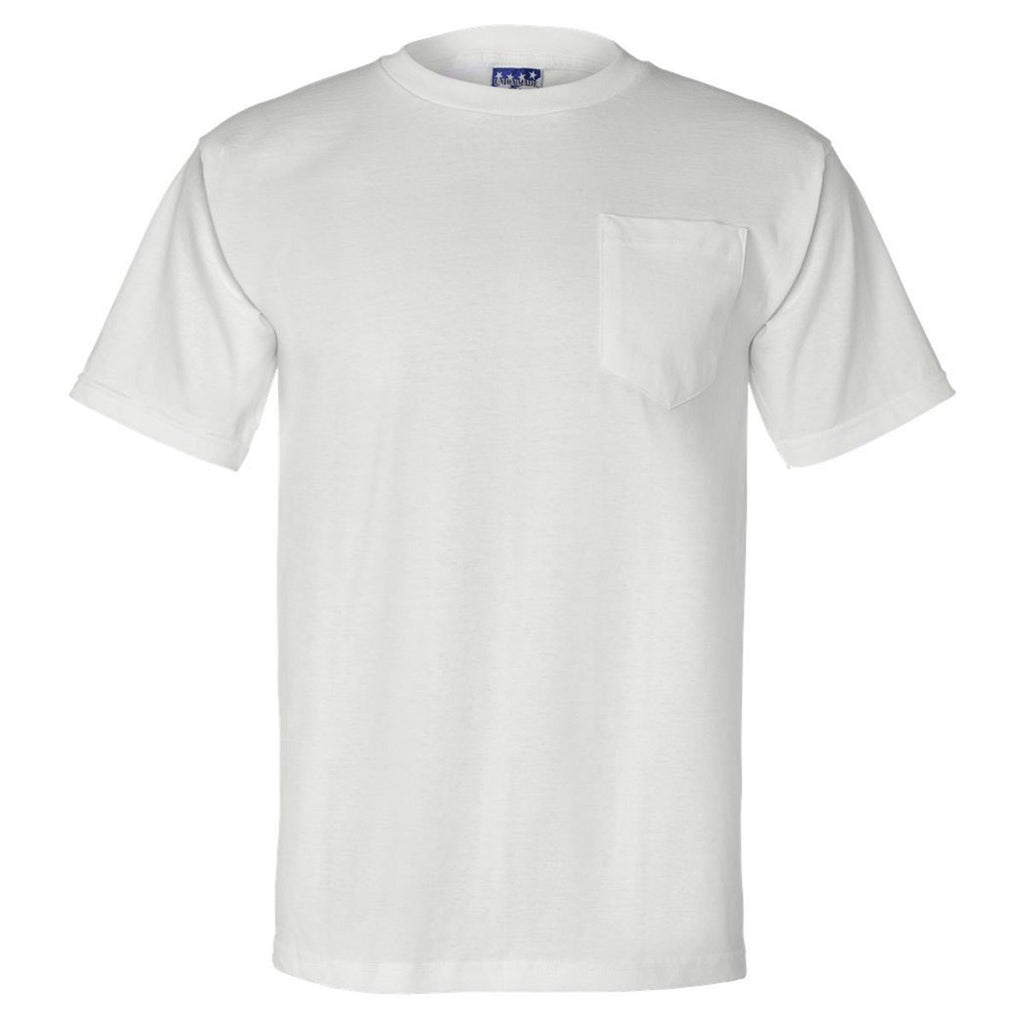 Bayside Men's White Union-Made Short Sleeve T-Shirt with Pocket
