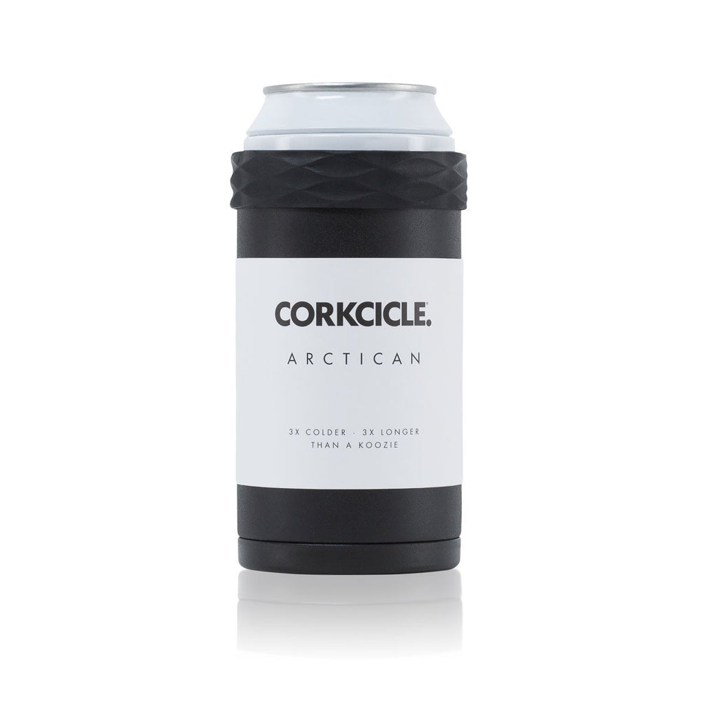 Standard koozies typically cannot withstand frequent use. The materials fail to absorb moisture, as well as lose the materials that bind the temperature retention accessories. CORKCICLE. has develop a replacement for the standard koozie by introducing the Black Artican 12oz. The innovative Artican maintains cold drink temperatures, without making your hands cold. Freeze the cooling core, twist it on a beverage can or bottle, and enjoy refreshing cold beverages for up to three hours. Add a custom logo to spread the word about your company at business conferences. Corporate logoed gifts promote your brand everywhere the Artican goes.