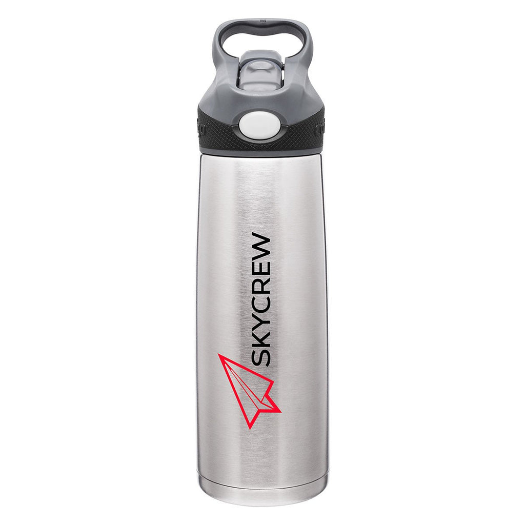 Convenient, mobile, durable-no, we're not just throwing a bunch of random words around. Instead we're painting a picture of the Contigo Silver Sheffield Stainless Steel Bottle 20oz you see right here. It's convenient because it includes an auto spout threaded lid. It's mobile because it's got plenty of storage but easily hooks on to a backpack. And it's durable thanks to the vacuum insulation stainless steel construction that keeps drinks at their desired temperature no matter where you go-just short of, say, the moon. One word we're missing from our list? Branded. Add your custom logo with Merchology, however, and we won't be missing that one anymore.