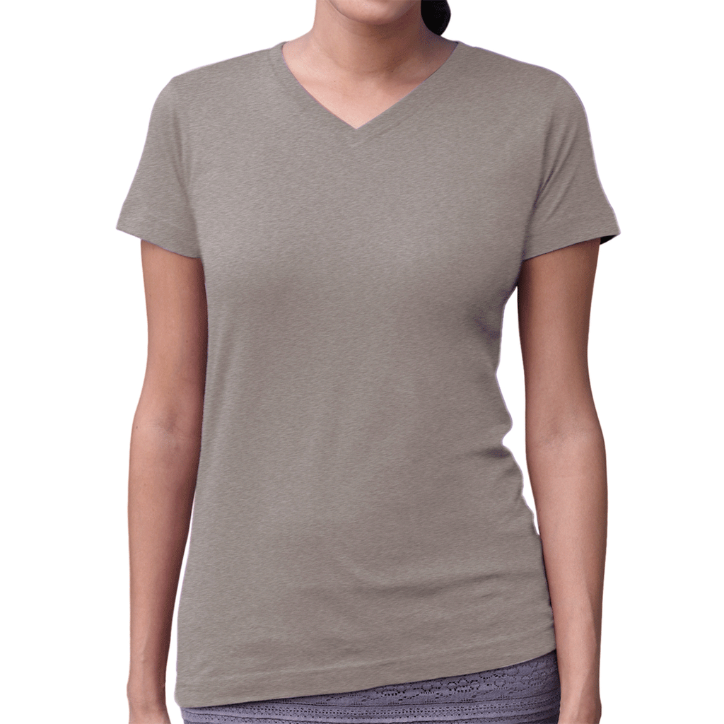 The cotton ringspun layout of this LAT Women's Heather V-Neck Fine Jersey T-Shirt is the perfect canvas for your company's custom logo. The fine curve on the shirt is both flattering and stylish. The V-neck layout provides a modern feel with a topstitched and ribbed design. Combined with your custom logo, this shirt is the perfect choice for a company giveaway. It also works well at casual recruiting events and can be suitable for a company athletic event if desired.