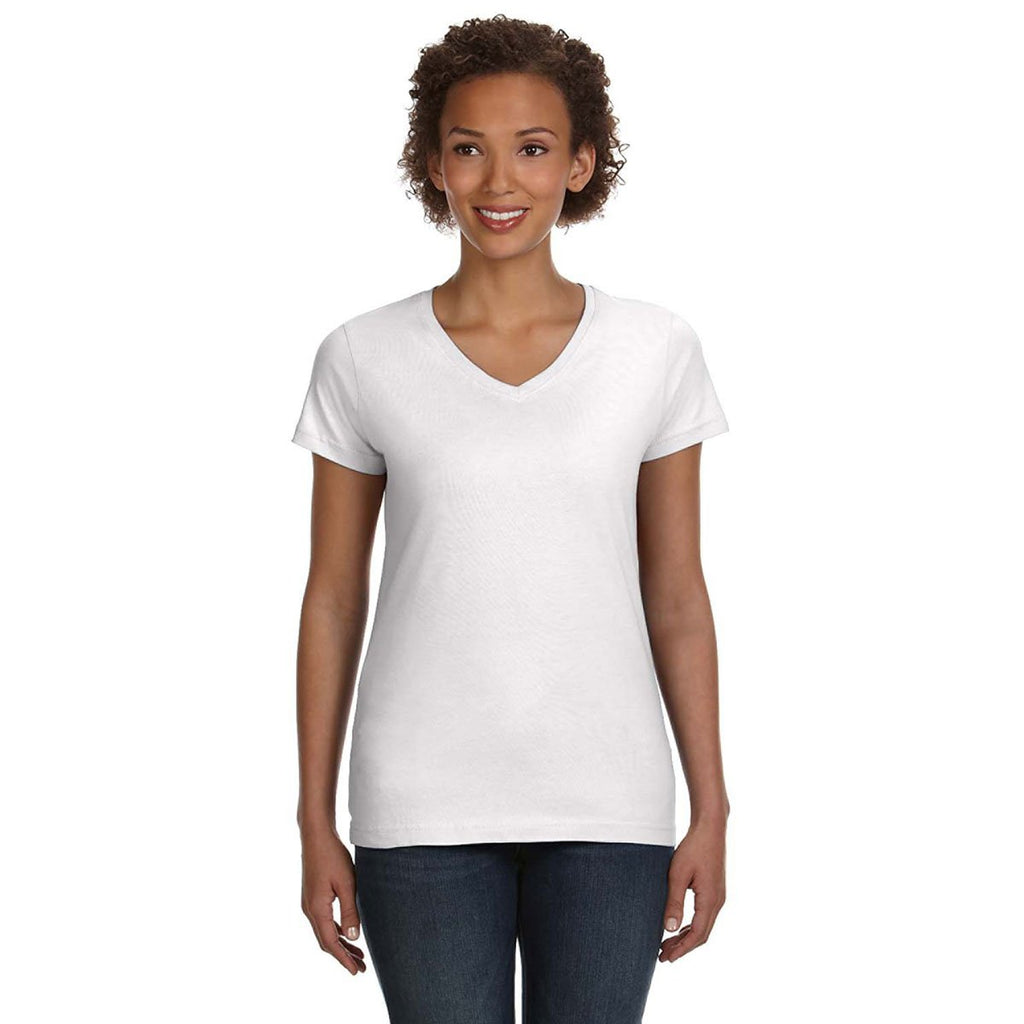 The cotton ringspun layout of this LAT Women's White V-Neck Fine Jersey T-Shirt is the perfect canvas for your company's custom logo. The fine curve on the shirt is both flattering and stylish. The V-neck layout provides a modern feel with a topstitched and ribbed design. Combined with your custom logo, this shirt is the perfect choice for a company giveaway. It also works well at casual recruiting events and can be suitable for a company athletic event if desired.