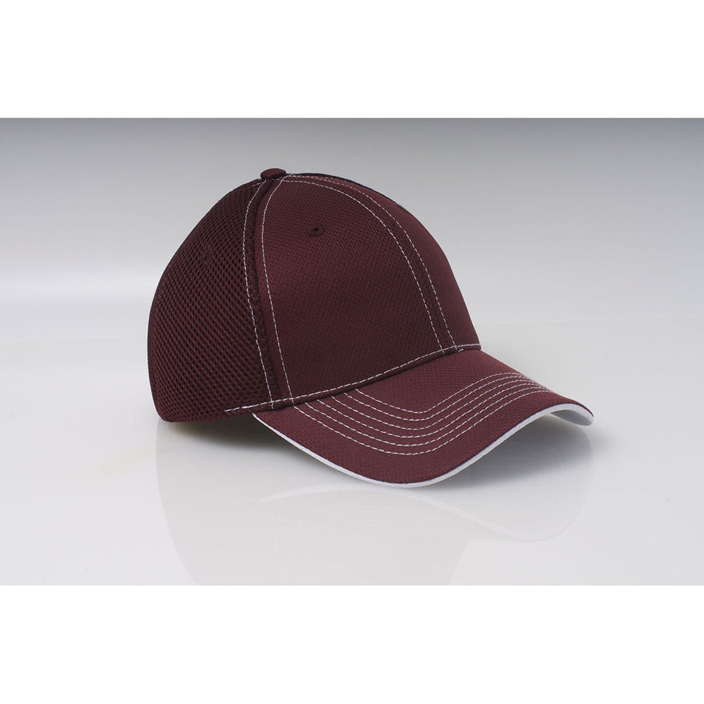 Pacific Headwear takes cap fashion to the next level by introducing the logoed Pacific Headwear Maroon/White Velcro Adjustable Soft Trucker Mesh Contrast Cap. Instead of trying to snap a closure together to create a comfortable fit, the stylish contrast cap includes a Velcro closure that takes just a couple of seconds to adjust. The plush polyester mesh back endures the punishment inflicted on it by frequent use, as well as enhances your comfort by circulating air to cool the skin. Pre-curved visor gives you a cap that is ready for the big game. Add a custom logo to spread the word about your business.Highlights