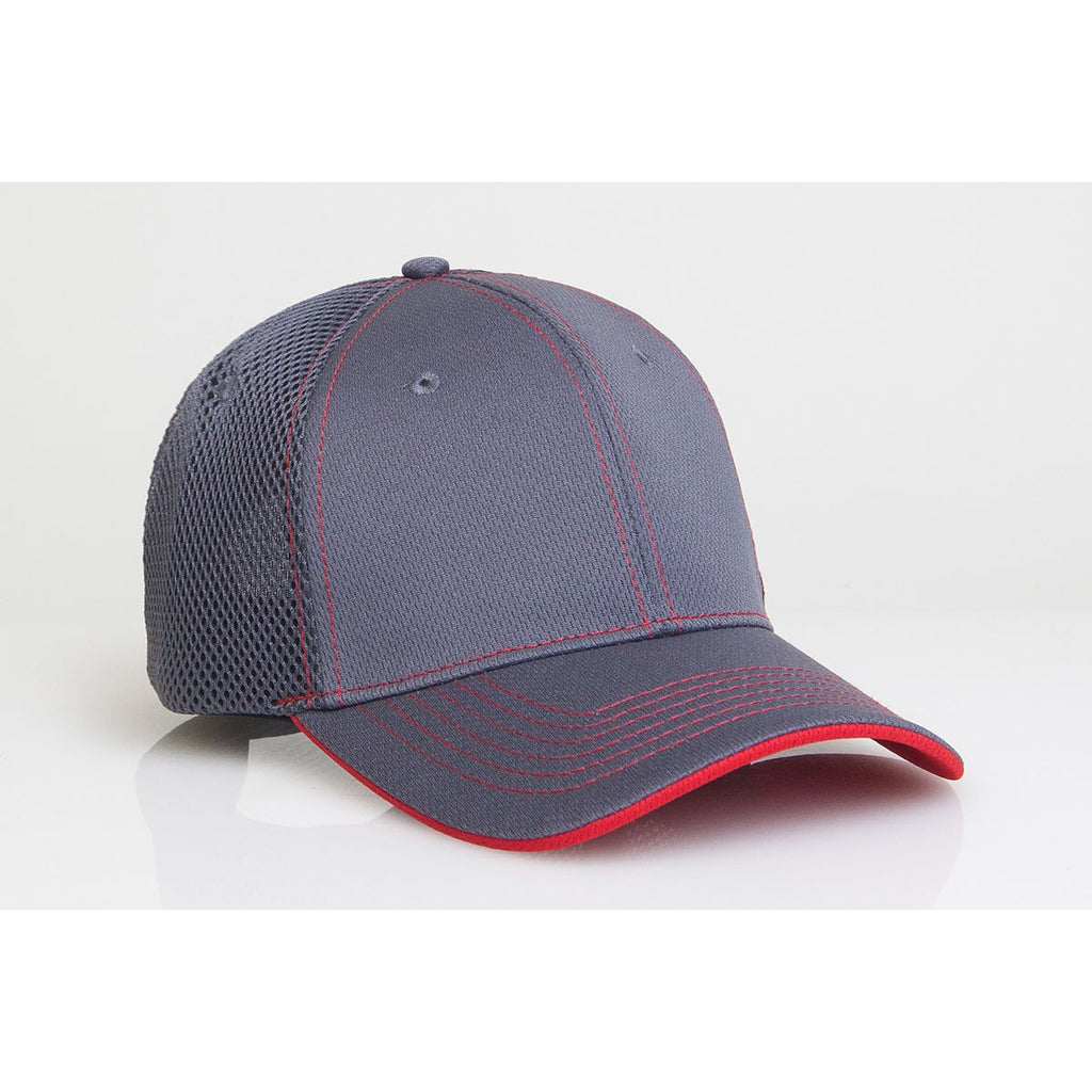 Pacific Headwear Graphite/Red Velcro Adjustable Soft Trucker Mesh Contrast Cap