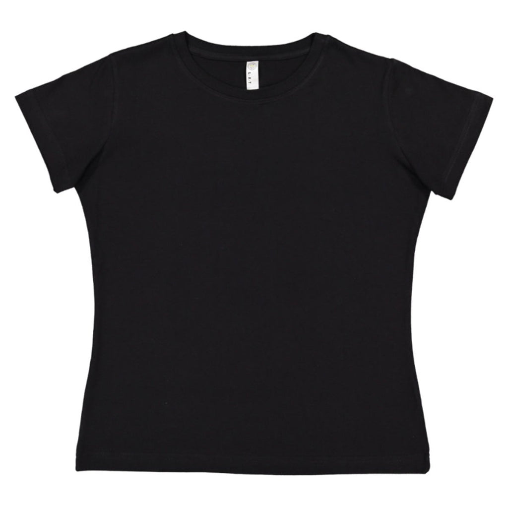 The slightly curvy fit of this LAT Women's Black Premium Jersey T-Shirt produces a brilliant look that can accentuate any custom logo or emblem you wish to print onto it. This t-shirt features cotton thread that is easy to wash off, while providing all-over comfort. The ribbed collar adds a nice design element that women will appreciate. With an assortment of colors to choose from, this shirt will complement your brand's logo well. Order a supply of these shirts to give away as employee appreciation gifts or use them at recruiting events. Either way, combined with your logo, these shirts are the perfect way to market your brand outside of the office.Corresponding Men's Style: LAT Men's Black Premium Jersey T-Shirt