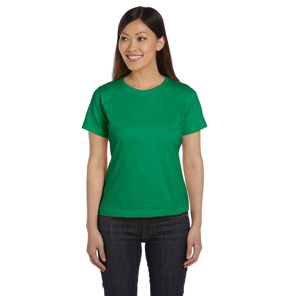 The slightly curvy fit of this LAT Women's Kelly Premium Jersey T-Shirt produces a brilliant look that can accentuate any custom logo or emblem you wish to print onto it. This t-shirt features cotton thread that is easy to wash off, while providing all-over comfort. The ribbed collar adds a nice design element that women will appreciate. With an assortment of colors to choose from, this shirt will complement your brand's logo well. Order a supply of these shirts to give away as employee appreciation gifts or use them at recruiting events. Either way, combined with your logo, these shirts are the perfect way to market your brand outside of the office.Highlights