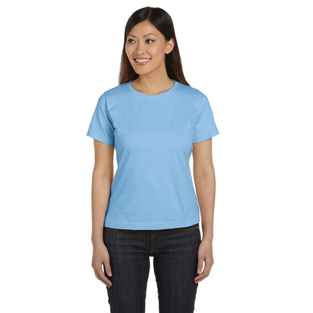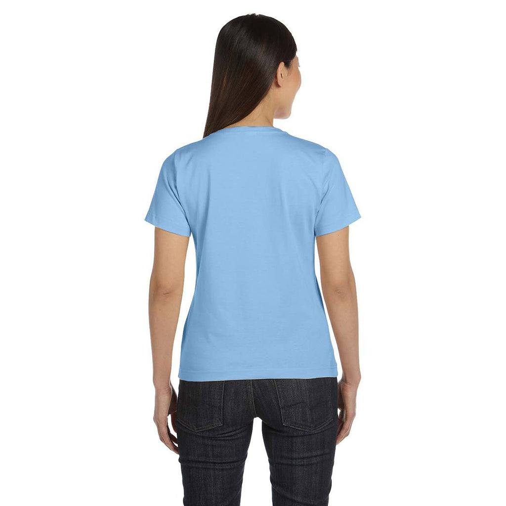 The slightly curvy fit of this LAT Women's Light Blue Premium Jersey T-Shirt produces a brilliant look that can accentuate any custom logo or emblem you wish to print onto it. This t-shirt features cotton thread that is easy to wash off, while providing all-over comfort. The ribbed collar adds a nice design element that women will appreciate. With an assortment of colors to choose from, this shirt will complement your brand's logo well. Order a supply of these shirts to give away as employee appreciation gifts or use them at recruiting events. Either way, combined with your logo, these shirts are the perfect way to market your brand outside of the office.Highlights
