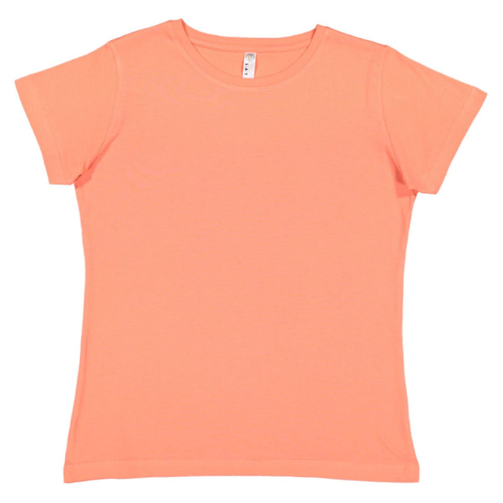 The slightly curvy fit of this LAT Women's Papaya Premium Jersey T-Shirt produces a brilliant look that can accentuate any custom logo or emblem you wish to print onto it. This t-shirt features cotton thread that is easy to wash off, while providing all-over comfort. The ribbed collar adds a nice design element that women will appreciate. With an assortment of colors to choose from, this shirt will complement your brand's logo well. Order a supply of these shirts to give away as employee appreciation gifts or use them at recruiting events. Either way, combined with your logo, these shirts are the perfect way to market your brand outside of the office.Highlights