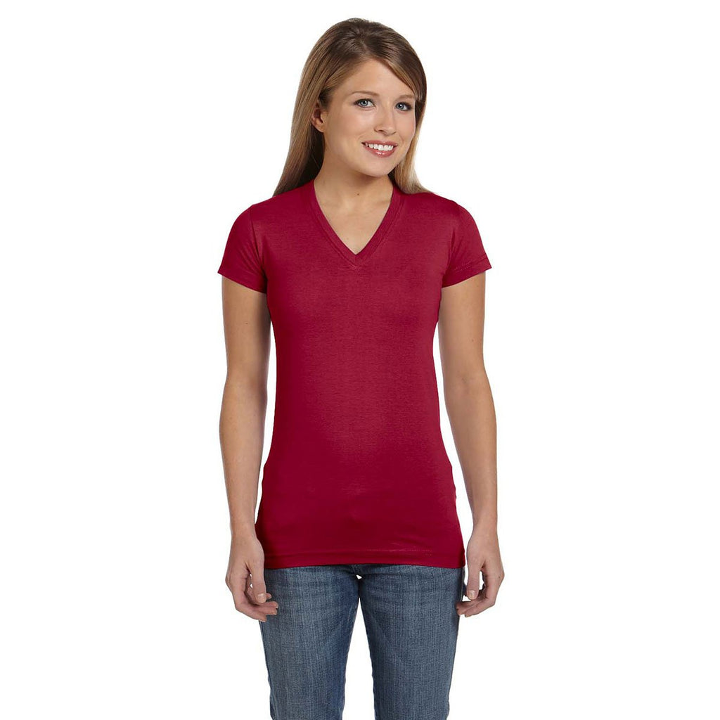 LAT Women's Garnet Junior Fit V-Neck Fine Jersey T-Shirt