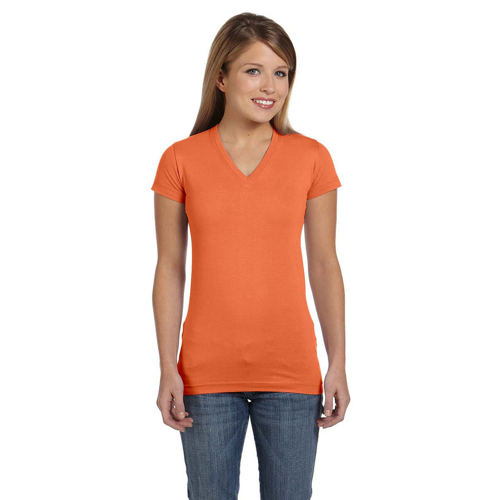 LAT Women's Papaya Junior Fit V-Neck Fine Jersey T-Shirt